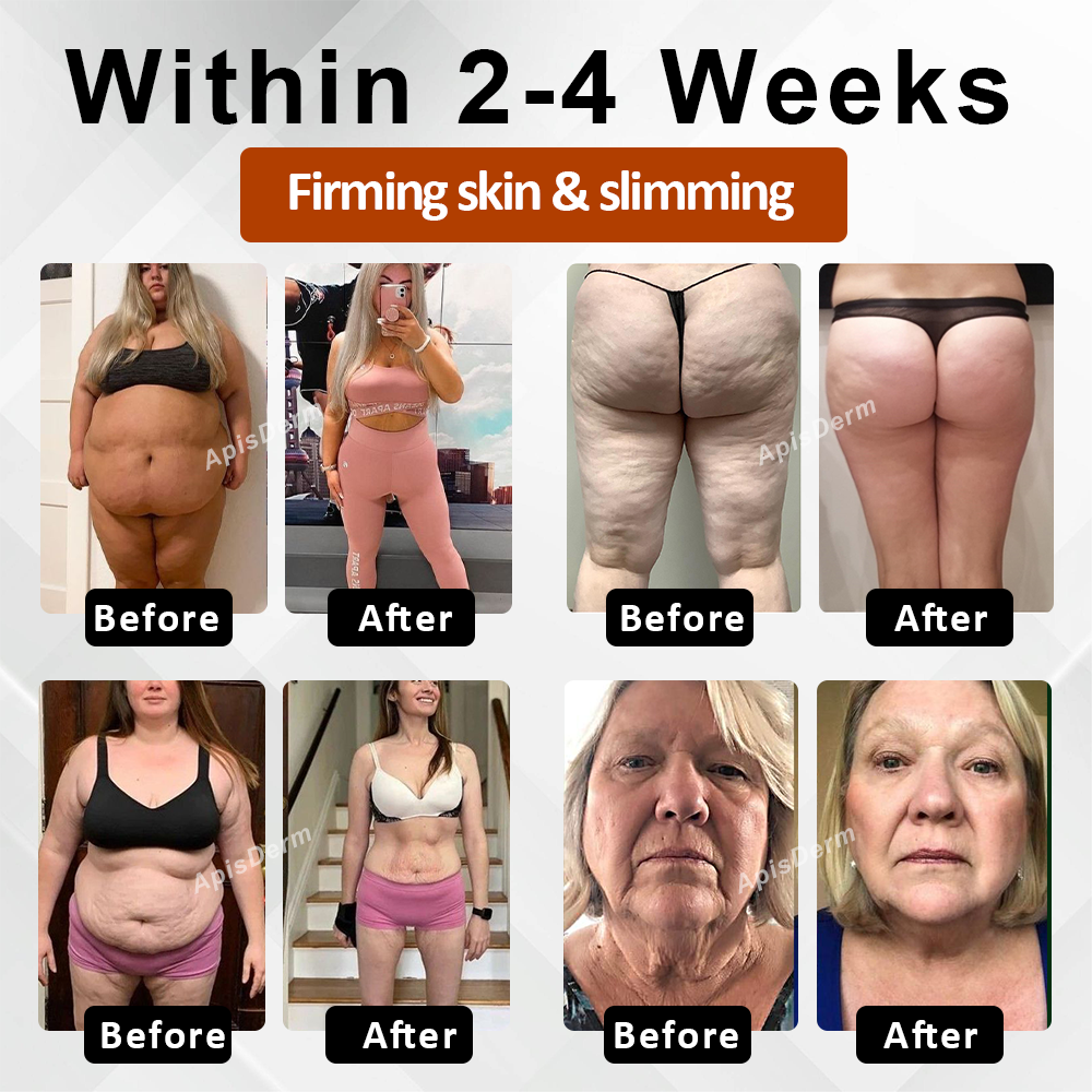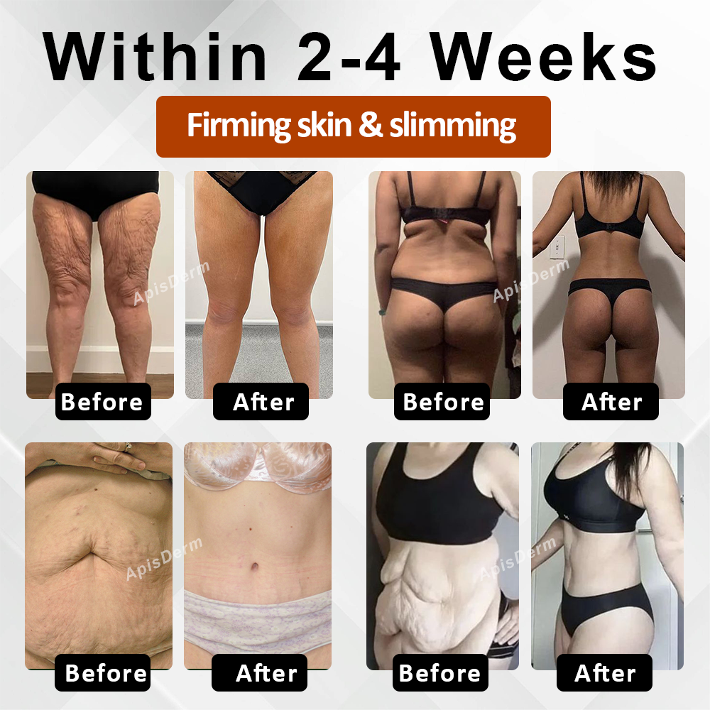 ApisDerm™ also incorporates hyaluronidase, which boosts lymphatic drainage, helping to reduce puffiness and support a more sculpted appearance. The combination of these ingredients promotes a slimming effect, refining body contours and revealing smoother, more toned skin with regular use.