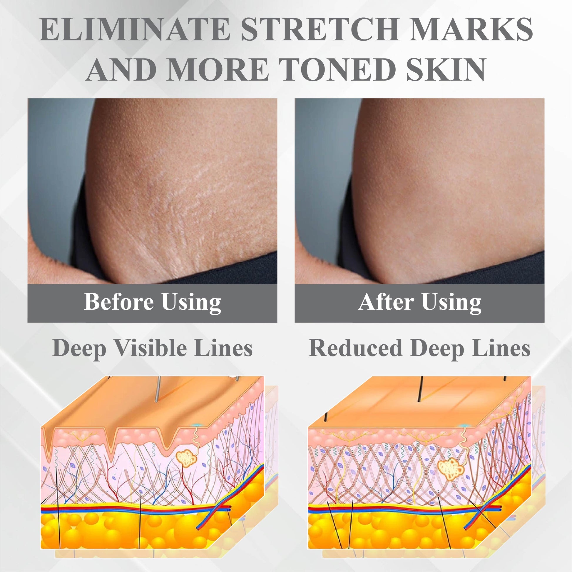 - Targets visible signs of cellulite and puffiness