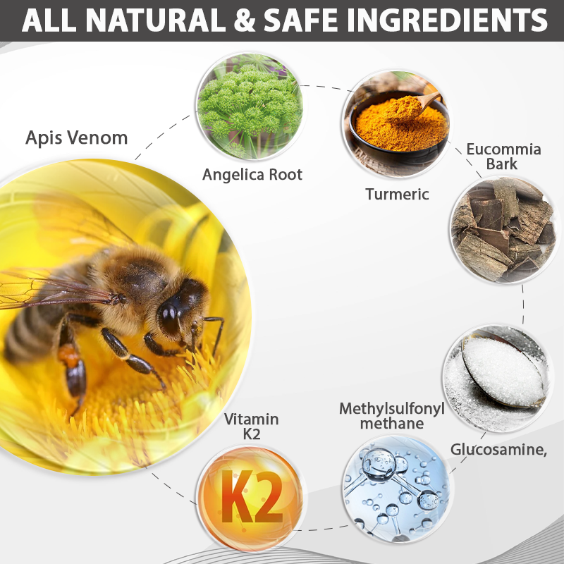 ApisHeal™ East West Fusion JointRelief Cream harnesses the power of Apis venom to provide effective joint pain relief. Melittin, a peptide in the venom, works as a potent anti-inflammatory to reduce swelling and inflammation, targeting joint stiffness and discomfort.