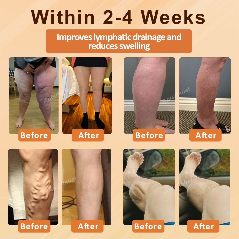 ApisRelief™ EdemaSlim Care DetoxBody Cream combines potent ingredients to reduce swelling and support lymphatic drainage. Apis venom helps reduce inflammation and improve circulation, while Lemon Essential Oil boosts metabolism and detoxification. Panax notoginseng extract enhances blood flow, and Horse Chestnut extract strengthens blood vessels to reduce fluid buildup. Ginger Root Extract stimulates circulation, alleviating water retention and promoting overall skin health.